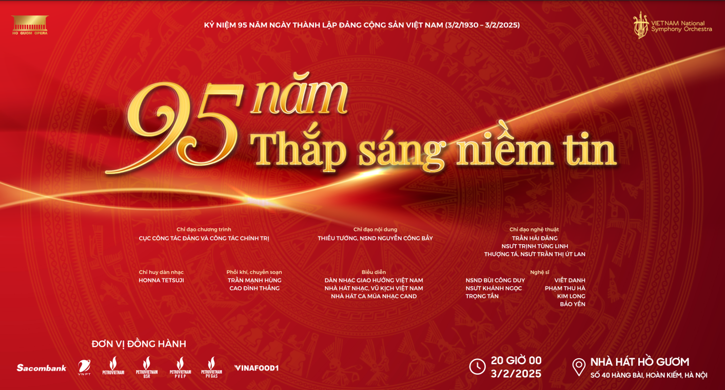 Nhân kỷ niệm 95 năm Ngày thành lập Đảng Cộng sản Việt Nam, được sự chỉ đạo của Cục Công tác đảng và công tác chính trị, Bộ Công an, Nhà hát Hồ Gươm phối hợp cùng Dàn nhạc Giao hưởng Việt Nam tổ chức Chương trình nghệ thuật đặc biệt mang tên “95 năm Thắp sáng niềm tin”.