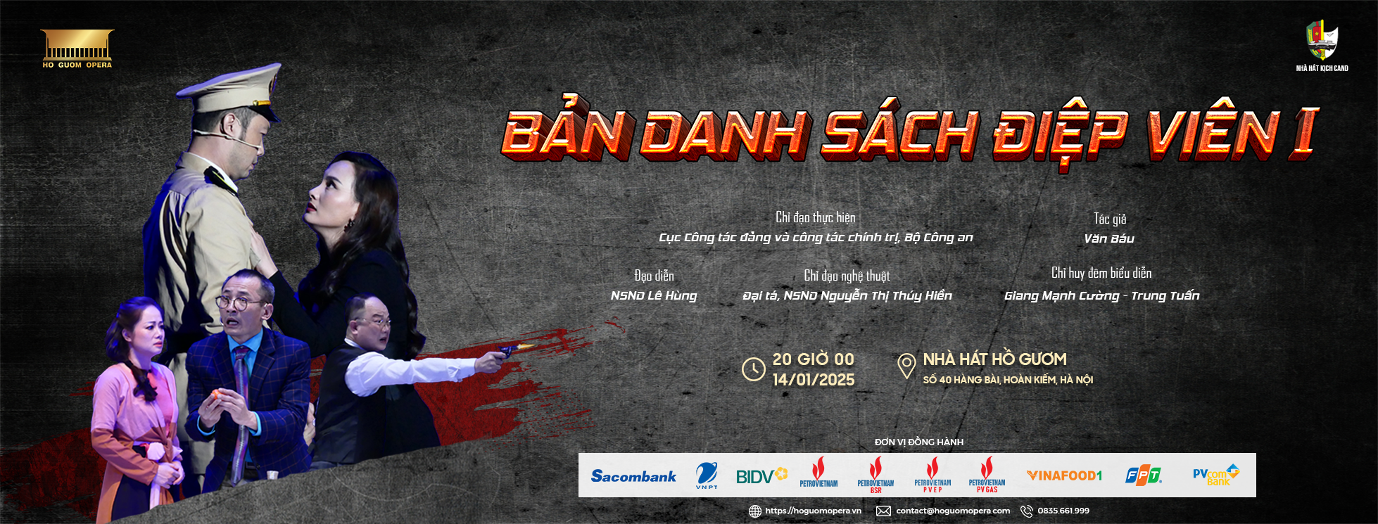 Tối 14/01, vở kịch “Bản danh sách điệp viên I” sẽ trở lại trên sân khấu Nhà hát Hồ Gươm hứa hẹn mang đến nhiều điểm nhấn hấp dẫn và bất ngờ. Là một trong những kịch bản đầu tiên cho dòng kịch phản gián về lực lượng Công an nhân dân, mang về nhiều giải thưởng nghệ thuật.