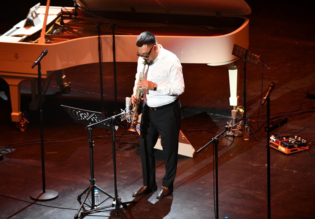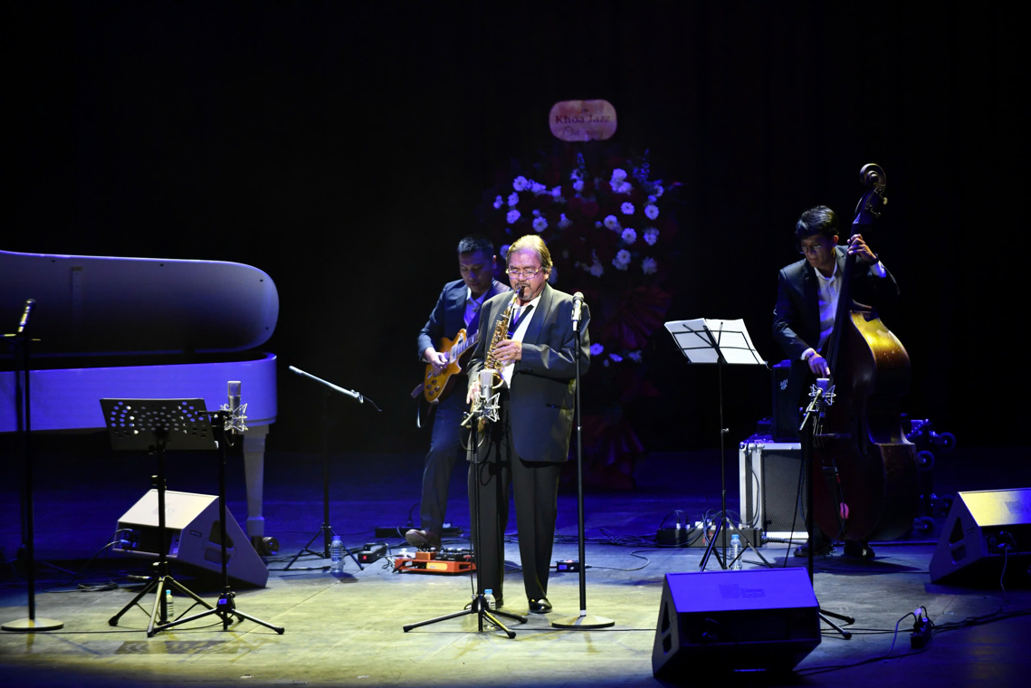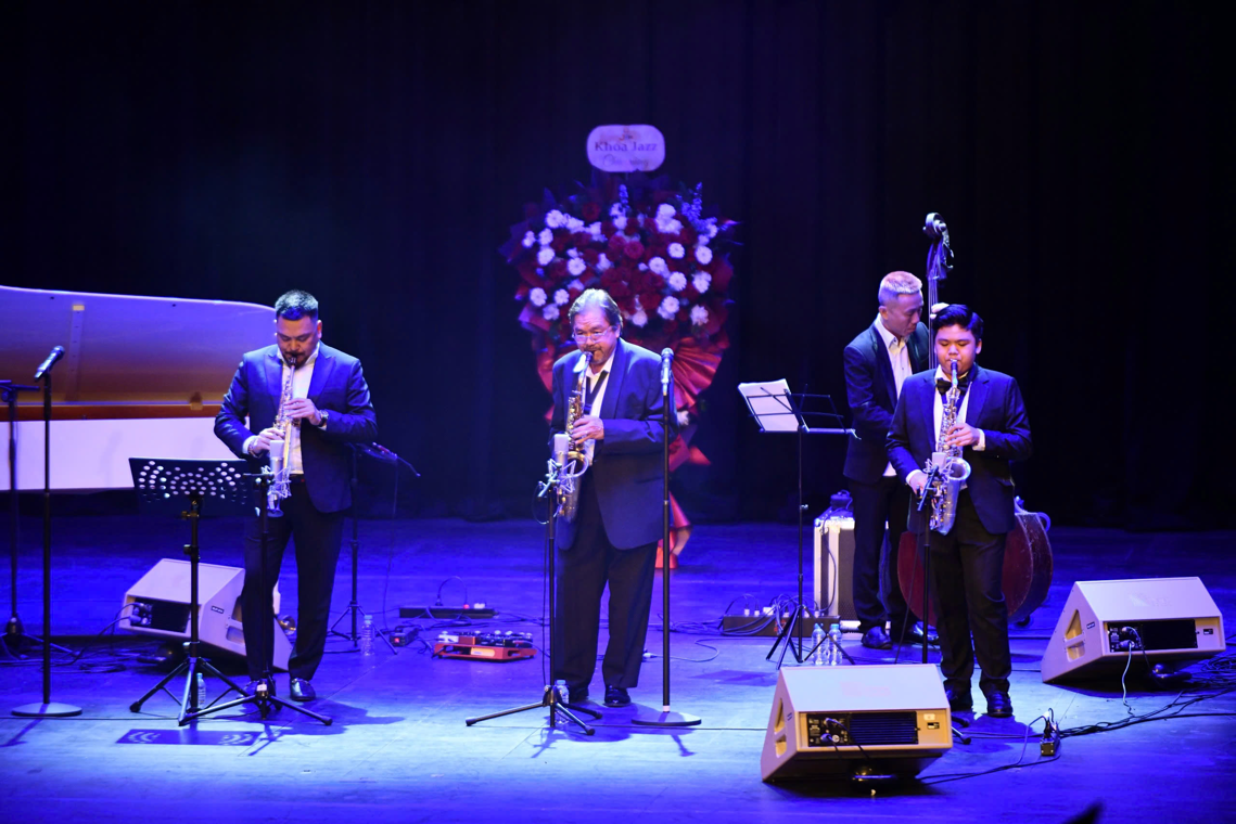 Tối 27/11, khán giả Nhà hát Hồ Gươm đắm chìm trong không gian nhạc Jazz đầy ma mị và phiêu diêu qua tiếng kèn Saxophone của NSƯT Quyền Văn Minh và Quyền Thiện Đắc cùng band Bình Minh Jazz trong Liveshow “Cha, con và Nhạc Jazz III”.