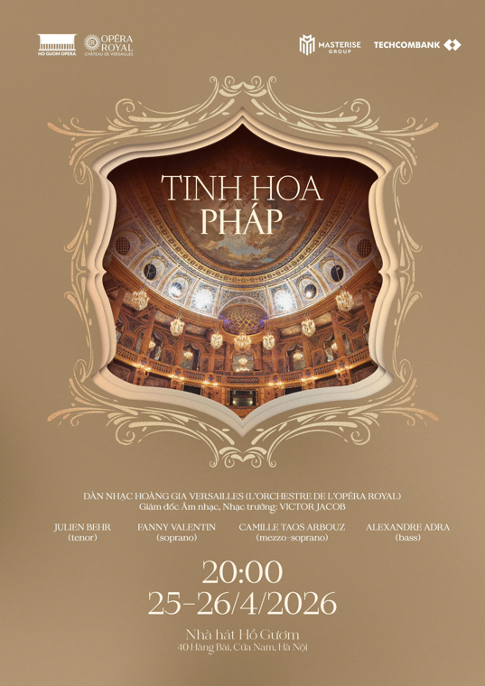 Trong gần ba năm chinh phục công chúng yêu nghệ thuật hàn lâm Việt Nam bằng những dự án ghi dấu ấn, Dàn nhạc Giao hưởng Nhà hát Opera Hoàng gia Versailles (Royal Opera of Versailles Orchestra) tiếp tục hội ngộ khán giả tại Nhà hát Hồ Gươm trong chương trình “Tinh hoa Pháp”, diễn ra vào tối 25 và 26/4/2026.