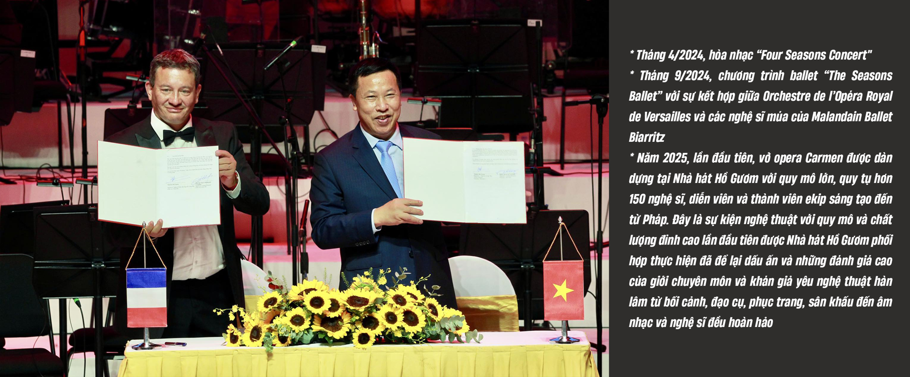 Đây là dấu mốc quan trọng khi Nhà hát Hồ Gươm trở thành đối tác quốc tế đầu tiên của Nhà hát Opera Hoàng gia Versailles trong các hoạt động tổ chức biểu diễn, nhằm mang tinh hoa âm nhạc thế giới nói chung, âm nhạc Pháp và châu Âu nói riêng đến với công chúng Việt Nam.