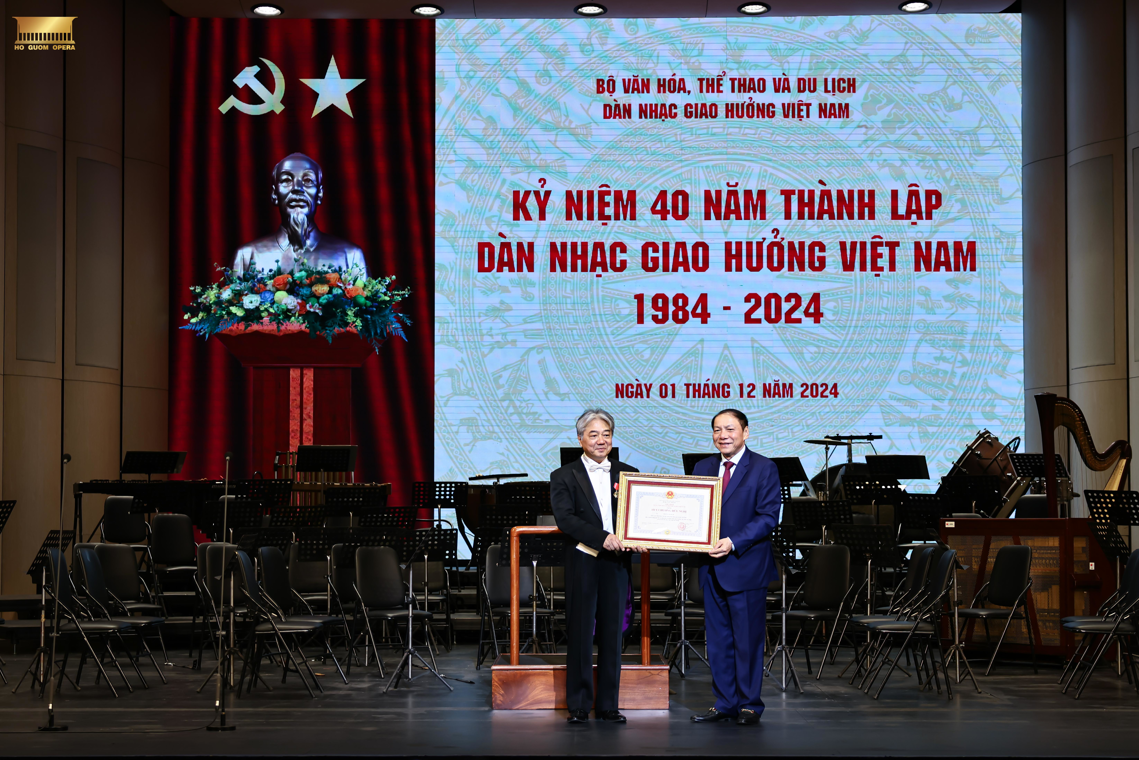 Tối 1/12, Lễ Kỷ niệm 40 năm ngày thành lập Dàn nhạc Giao hưởng Việt Nam đã diễn ra trọng thể tại Nhà hát Hồ Gươm. Tham dự buổi lễ có ông Nguyễn Văn Hùng, Ủy viên Trung ương Đảng, Bộ trưởng Bộ Văn hóa Thể thao và Du lịch; ông Tạ Quang Đông, Thứ trưởng Bộ Văn hóa Thể thao và Du lịch cùng Lãnh đạo đại diện các Vụ, Cục, Viện, các lãnh đạo đại diện cho các Nhà hát, các trường Đại học.