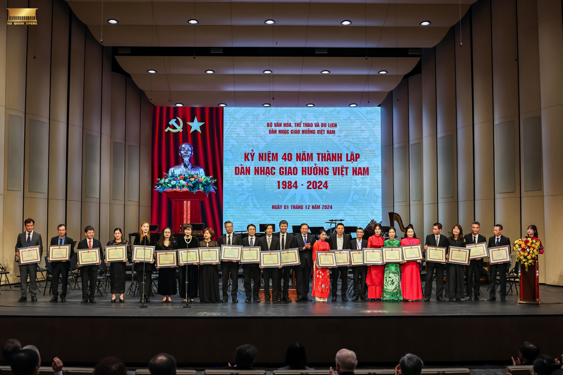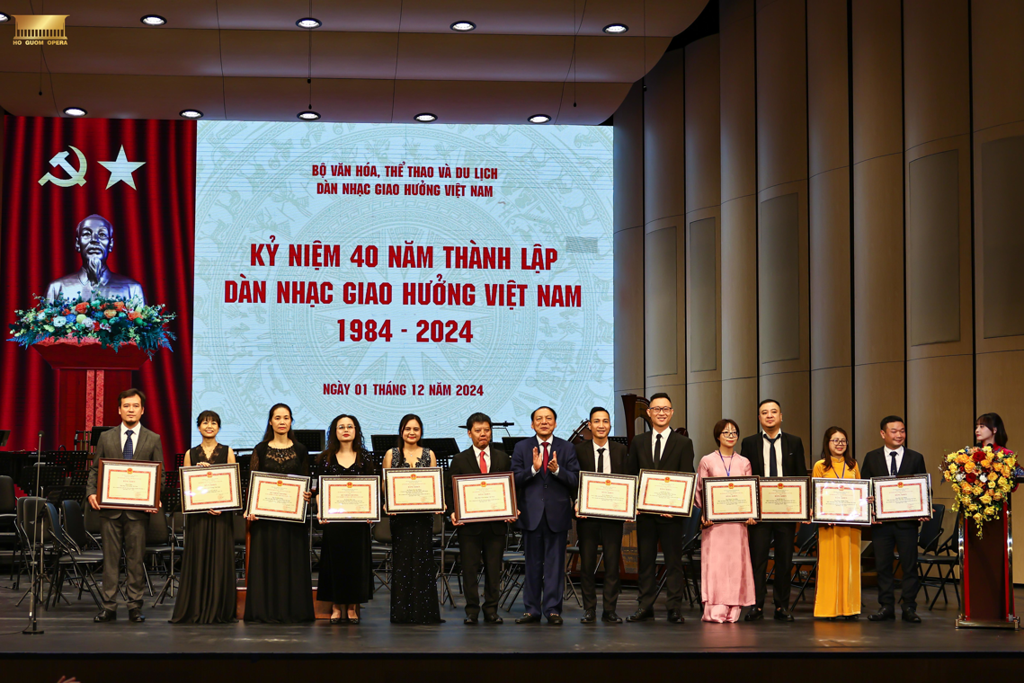 Ghi nhận những thành tựu đã đạt được của Dàn nhạc Giao hưởng Việt Nam, Thứ trưởng Bộ Văn hóa Thể thao và Du lịch Tạ Quang Đông nhận định: “Trong thời kỳ đổi mới, bên cạnh chức năng chính là biểu diễn thực hiện các nhiệm vụ chính trị của Đảng, Nhà nước, Dàn nhạc đã thực hiện nhiều chương trình quốc tế như giao lưu, hợp tác với các tổ chức biểu diễn nghệ thuật nước ngoài để dàn dựng, thực hiện các chương trình, dự án âm nhạc nhằm đưa nghệ thuật hàn lâm đến gần với khán thính giả, nâng cao năng lực chuyên môn của Dàn nhạc. Kỷ niệm 40 năm Ngày truyền thống của Dàn nhạc Giao hưởng Việt Nam, chúng ta tự hào nhưng cũng là dịp để chúng ta nghiêm túc nhìn nhận lại những nhiệm vụ, yêu cầu ngày càng cao, đòi hỏi chúng ta phải nỗ lực hơn nữa. Bám sát sự chỉ đạo của Đảng, Nhà nước, Dàn nhạc đã hoàn thành được trách nhiệm là kiến tạo, lan tỏa những giá trị đẹp nhất của nghệ thuật đến công chúng và bạn bè quốc tế. Với những cống hiến không ngừng nghỉ của các thế hệ, tập thể Dàn nhạc Giao hưởng Việt Nam và nhiều cá nhân đã được Đảng, Nhà nước ghi nhận, trao tặng nhiều phần thưởng cao quý như: Huân chương Lao động hạng Nhì, Bằng khen của Thủ tướng Chính phủ. Nhiều nghệ sĩ, diễn viên đã được Nhà nước phong tặng các danh hiệu: Nghệ sĩ nhân dân, Nghệ sĩ ưu tú…”.