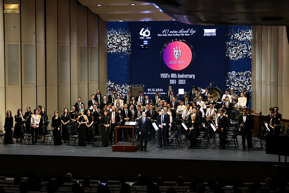 Ngay sau Lễ kỷ niệm 40 năm Dàn nhạc Giao huởng Việt Nam, Các vị khách quý và những người yêu nhạc cổ điển đã được thưởng thức một chương trình biểu diễn đặc sắc với sự góp mặt của NSND, violinist Bùi Công Duy, nghệ sĩ clarinet Tạ Trung Đức, nghệ sĩ cello Phan Đỗ Phúc, nghệ sĩ piano Nguyễn Việt Trung cùng các soprano: NSƯT Phạm Khánh Ngọc, Đào Tố Loan và Dàn nhạc Giao hưởng Việt Nam dưới đũa chỉ huy của Nhạc trưởng Honna Tetsuji đã mang đến một đêm nhạc đầy cảm xúc, đánh dấu cột mốc 40 năm cống hiến cho nền âm nhạc Việt Nam của Dàn nhạc.